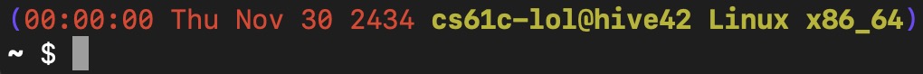 Warning: Starting this semester, campus has blocked SSH access from off campus, so you must be connected to the Berkeley VPN if you're accessing the hive machines from off campus. Additionally. the CalVisitor WiFi network on campus blocks SSH. Make sure you're not on CalVisitor when working on 61C things.