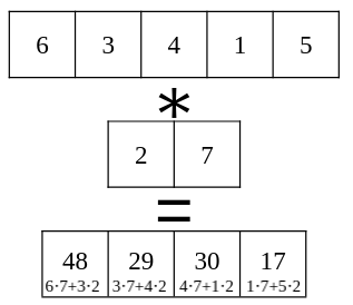 1D convolution is a special way of multiplying two vectors together in order to determine how well they overlap. This leads to many different applications that you'll explore in this project, but first, here are the mechanics for how a 1D convolution is done: (click the image for a larger version)